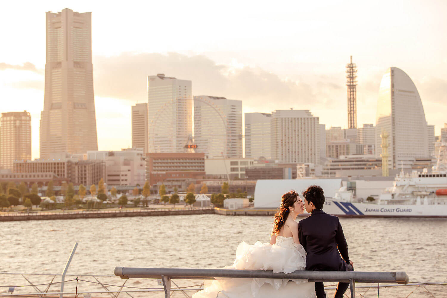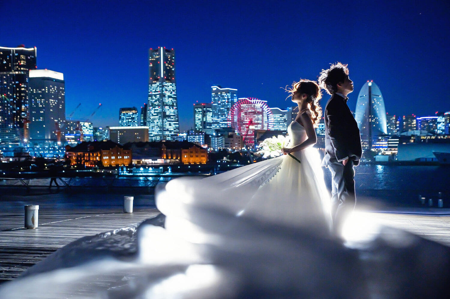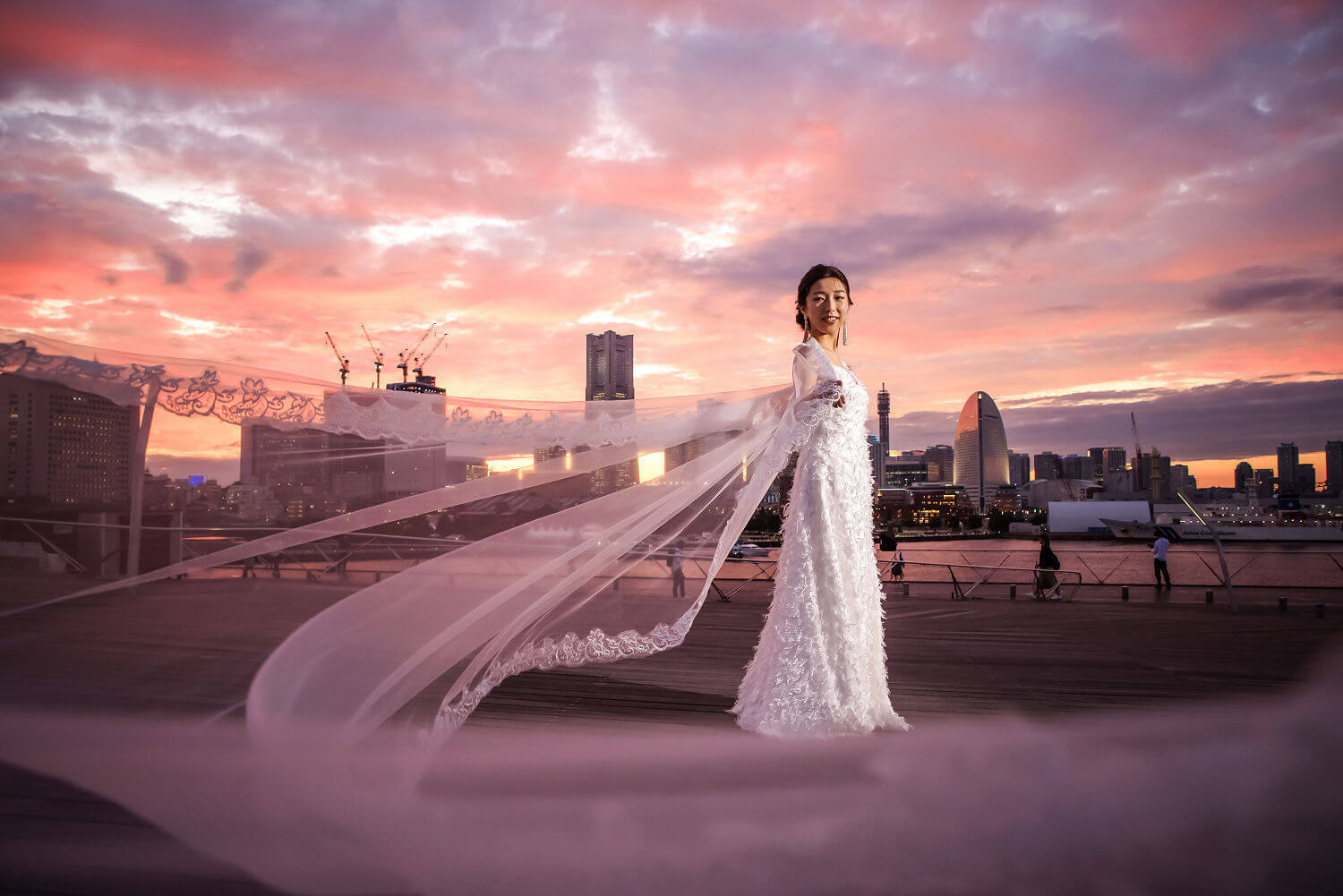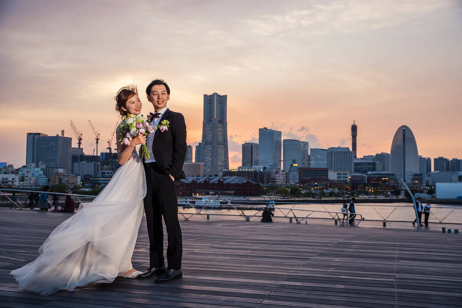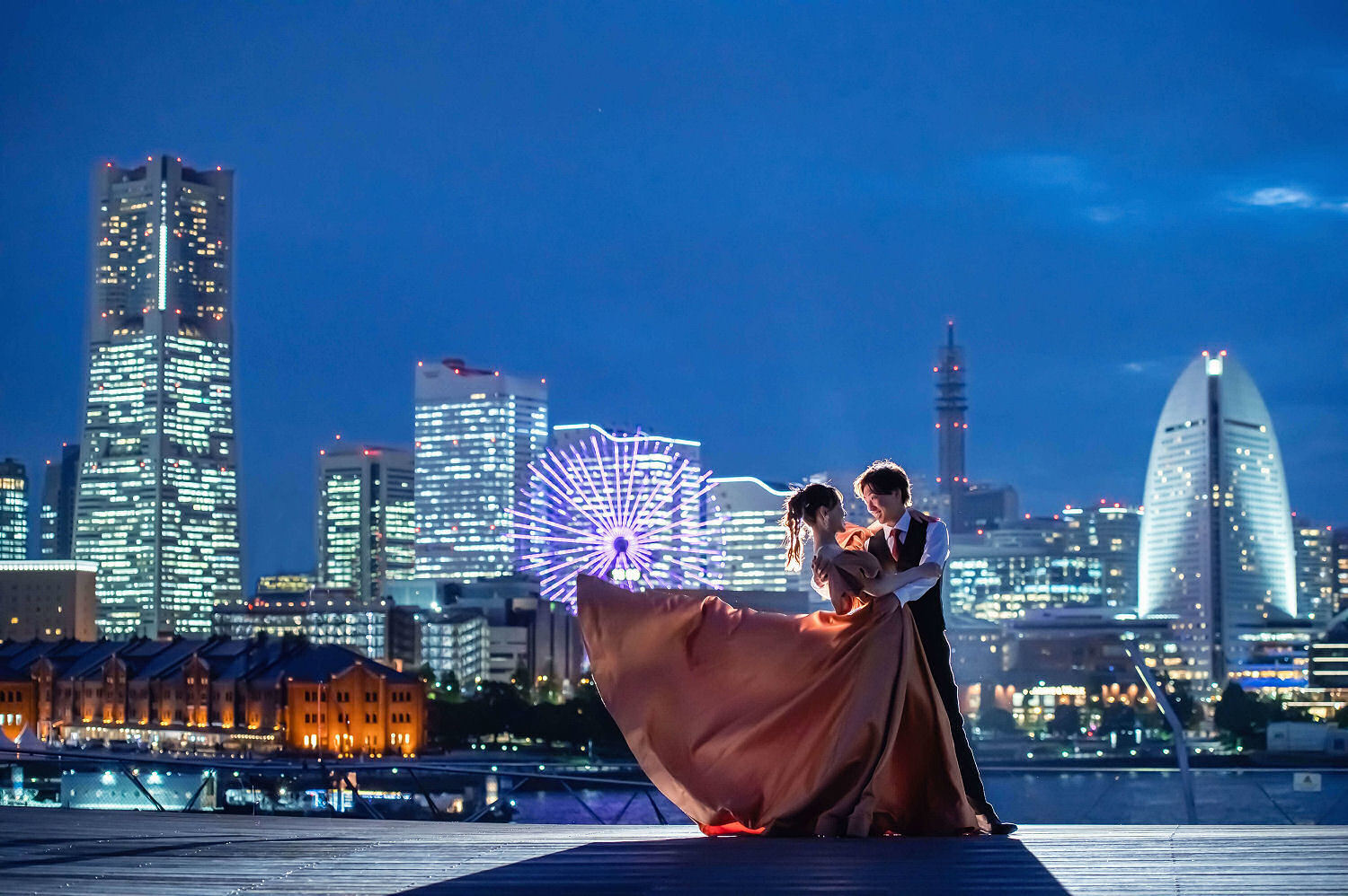 みなとみらいを一望できる人気の大桟橋の前撮りは、横浜出身のウェディングフォトグラファーがカット数無制限で撮影いたします。