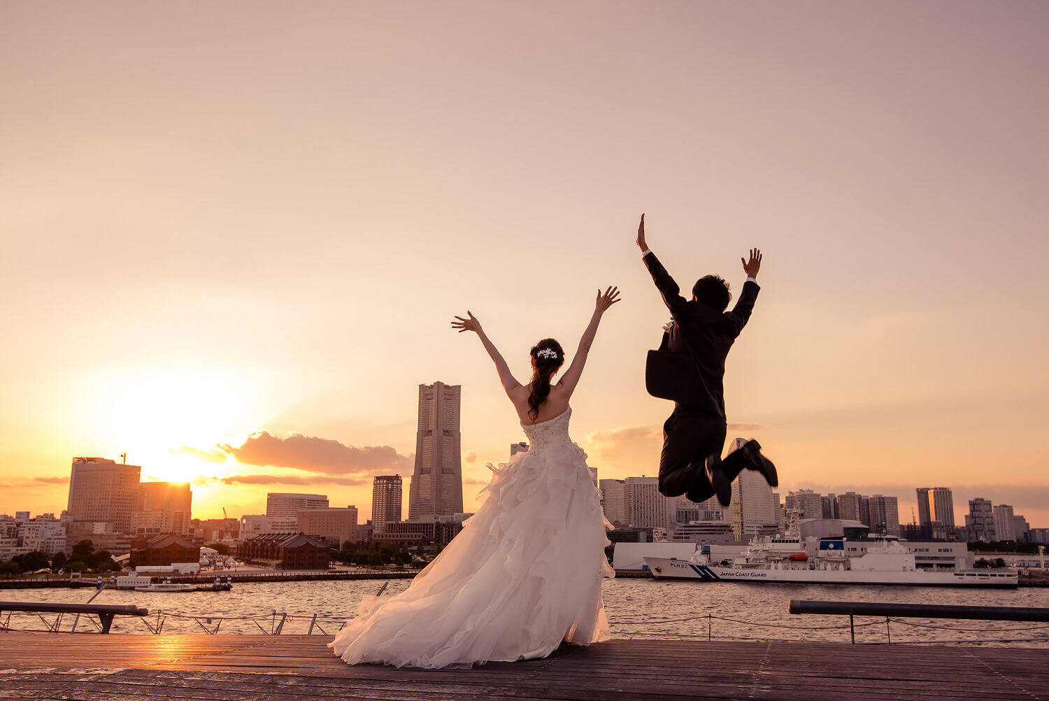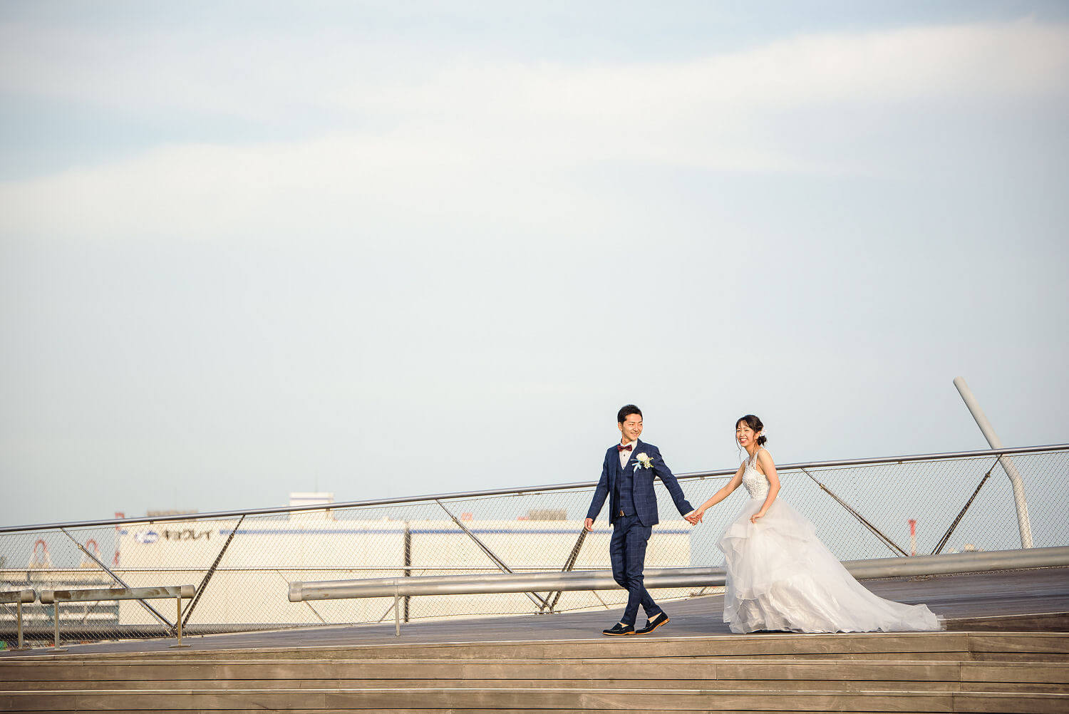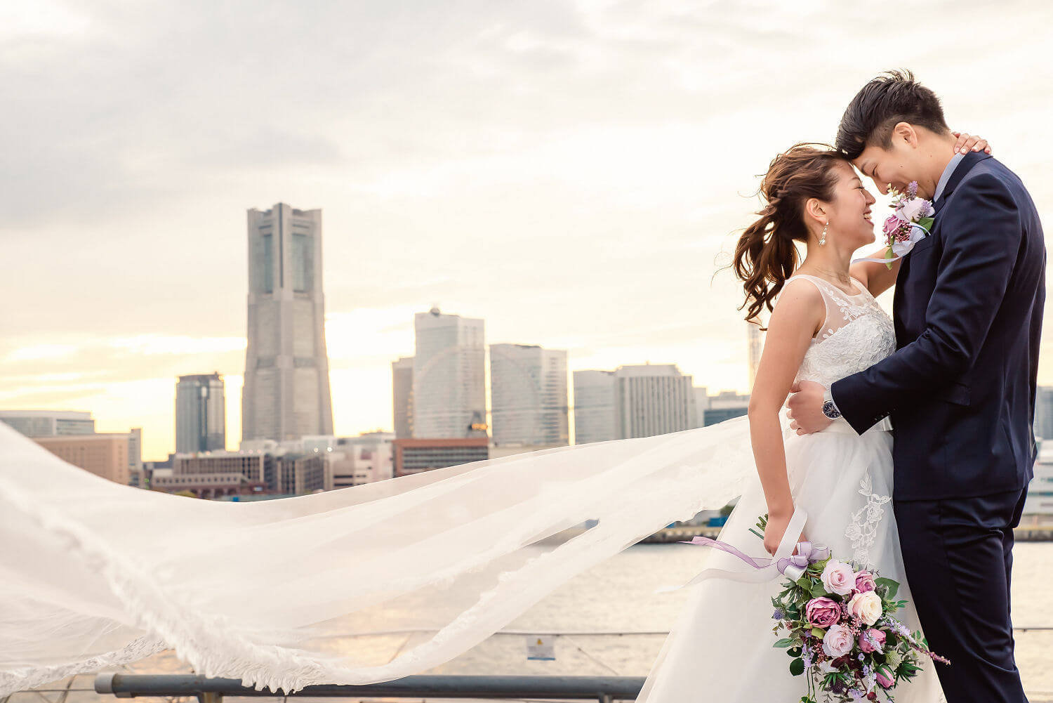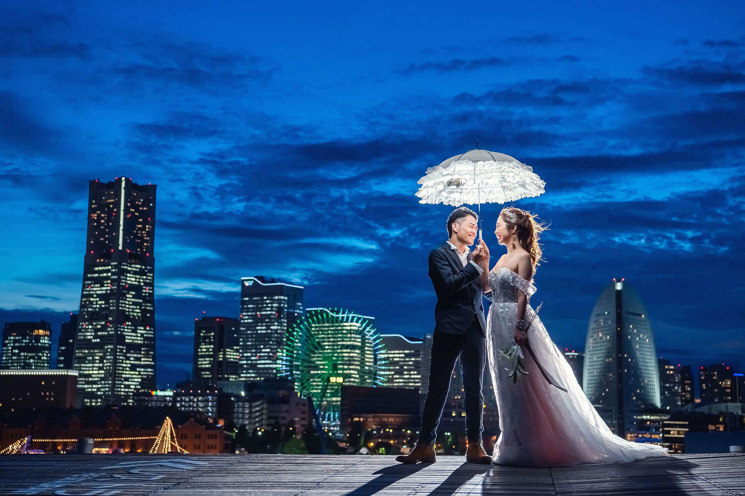 みなとみらいを一望できる人気の大桟橋の前撮りは、横浜出身のウェディングフォトグラファーがカット数無制限で撮影いたします。