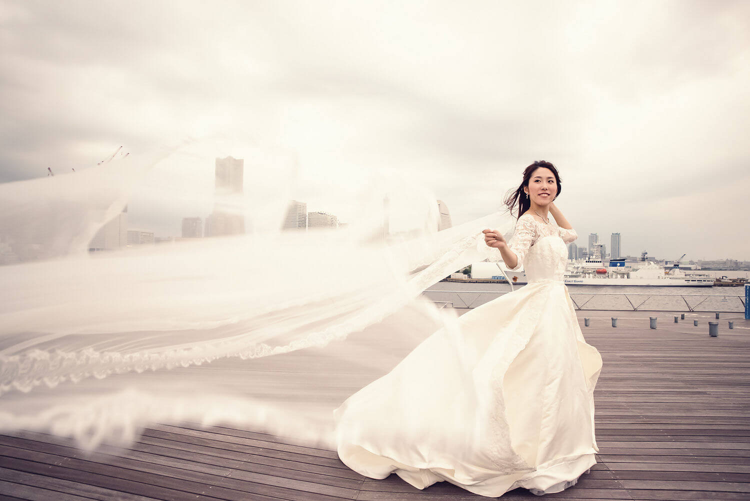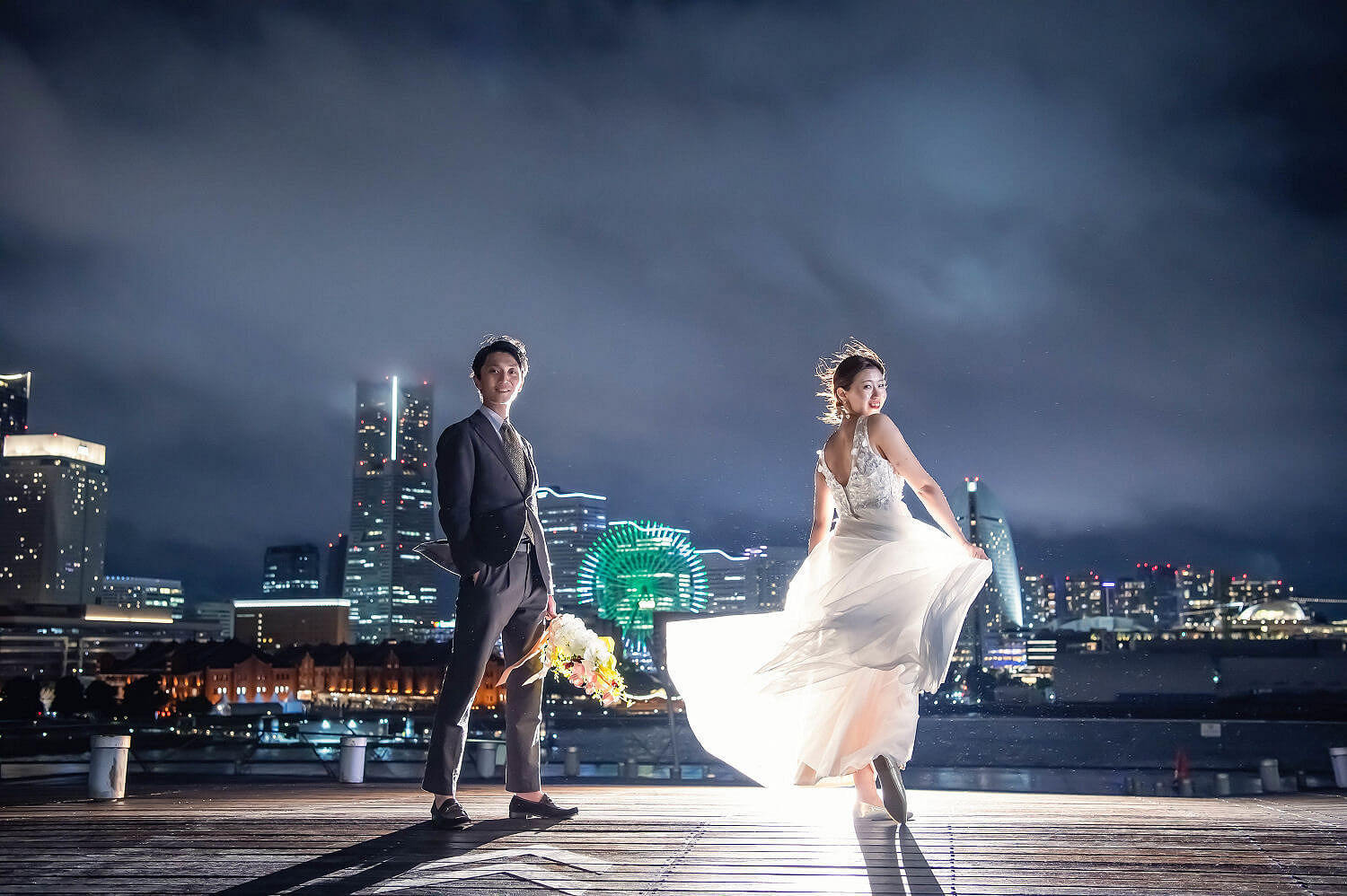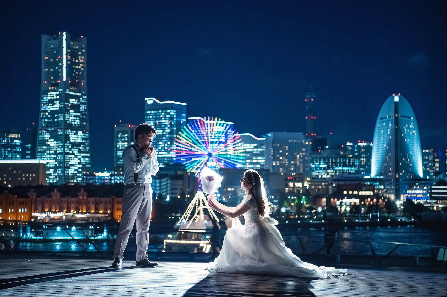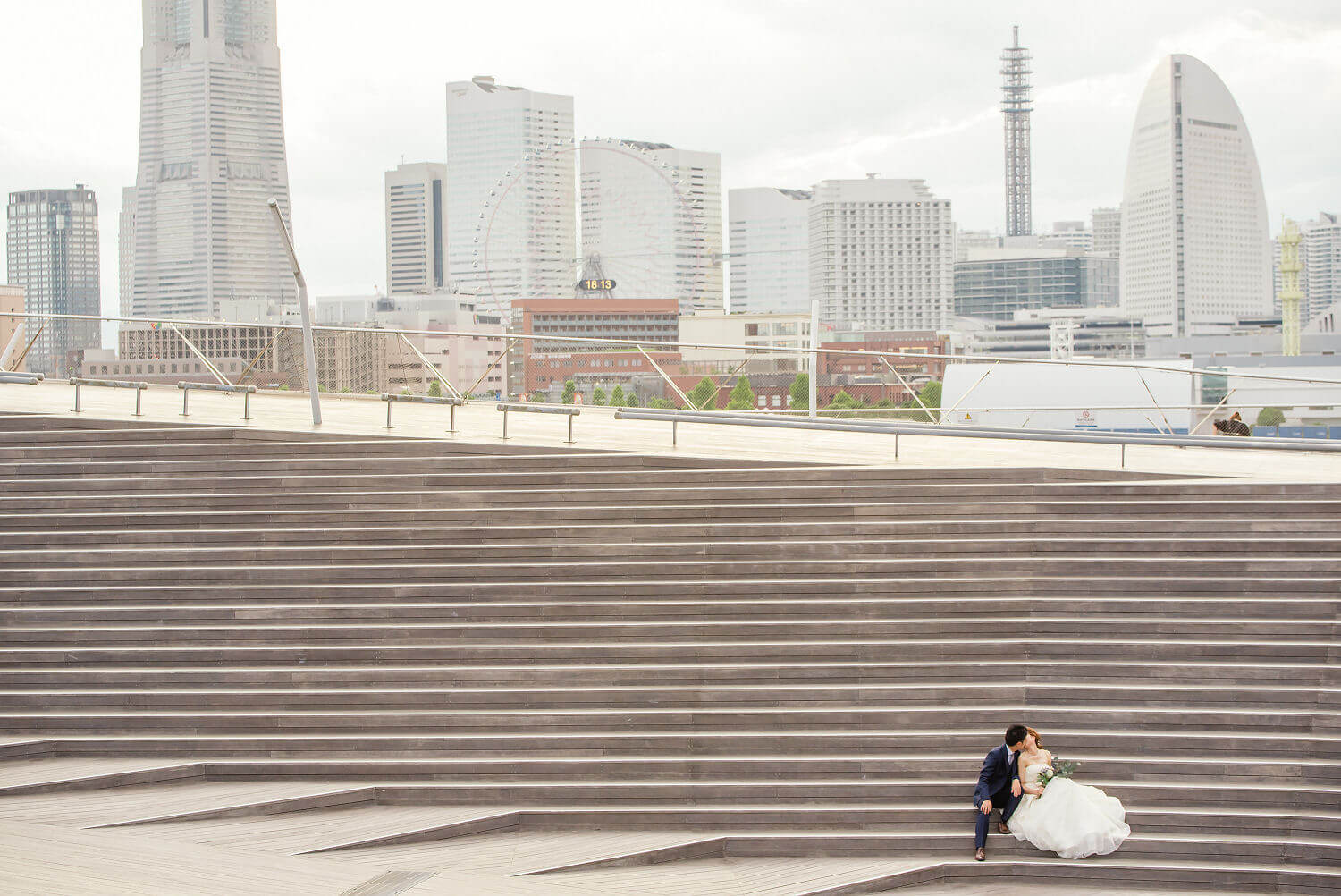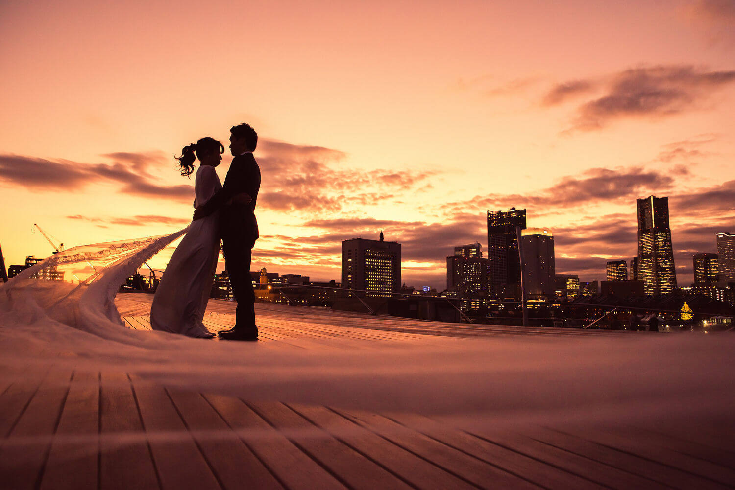 みなとみらいを一望できる人気の大桟橋の前撮りは、横浜出身のウェディングフォトグラファーがカット数無制限で撮影いたします。