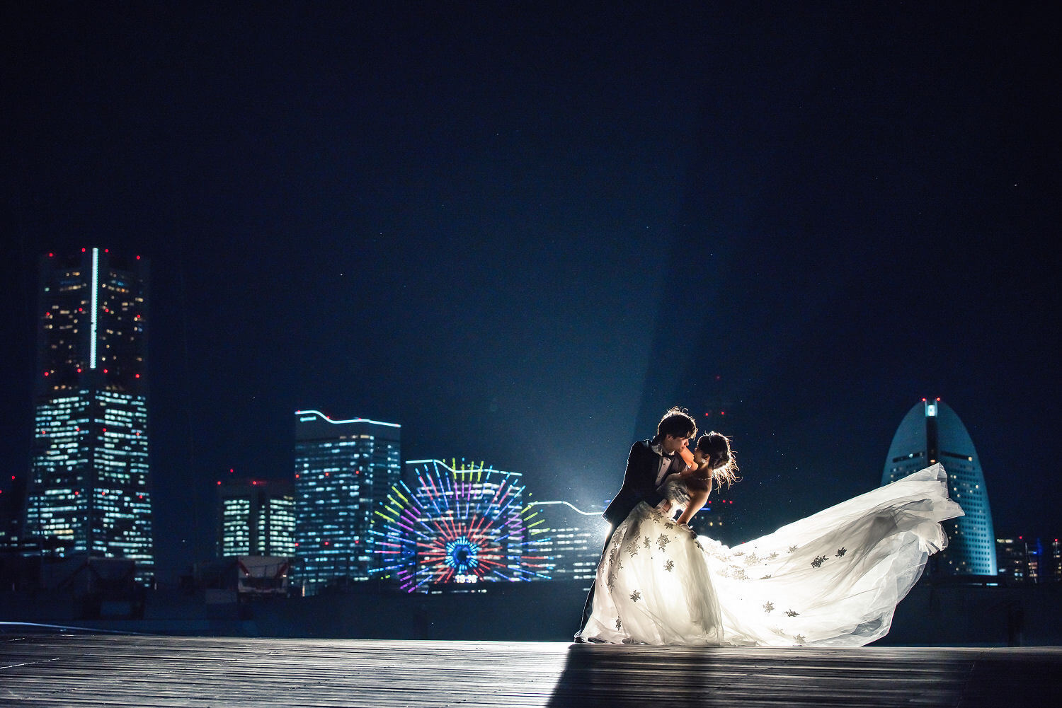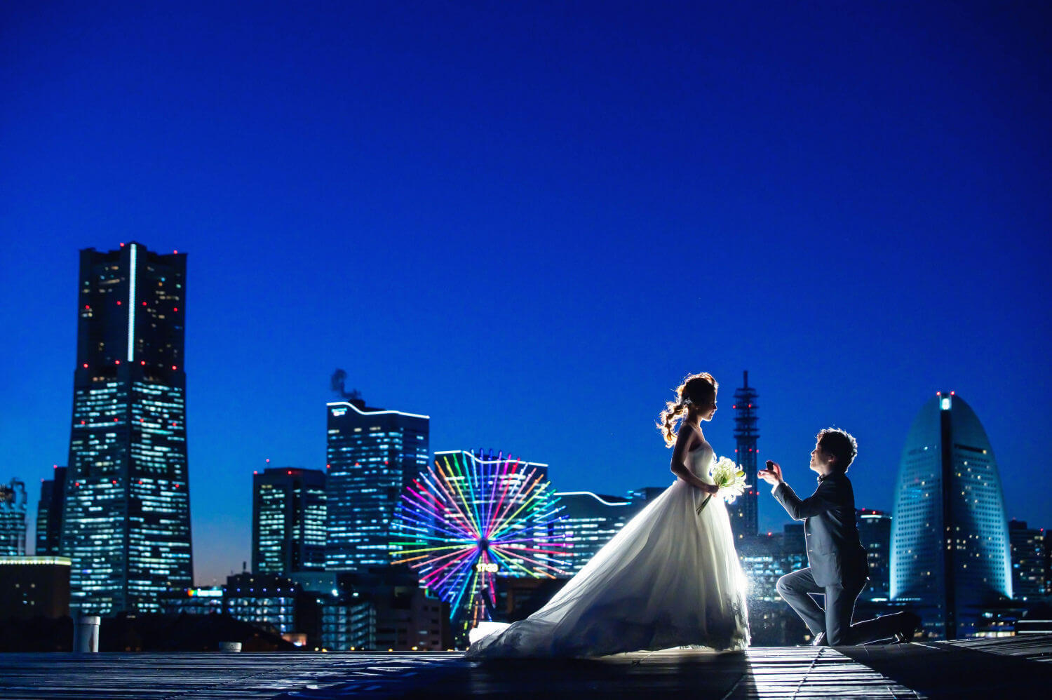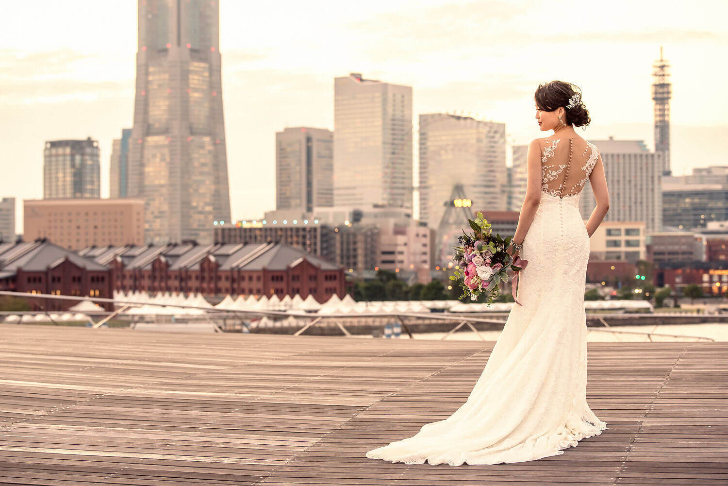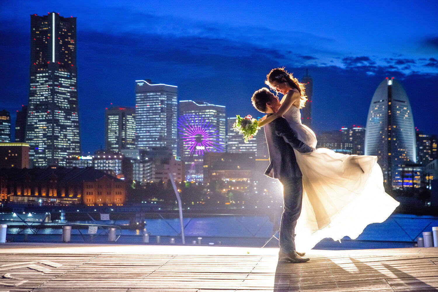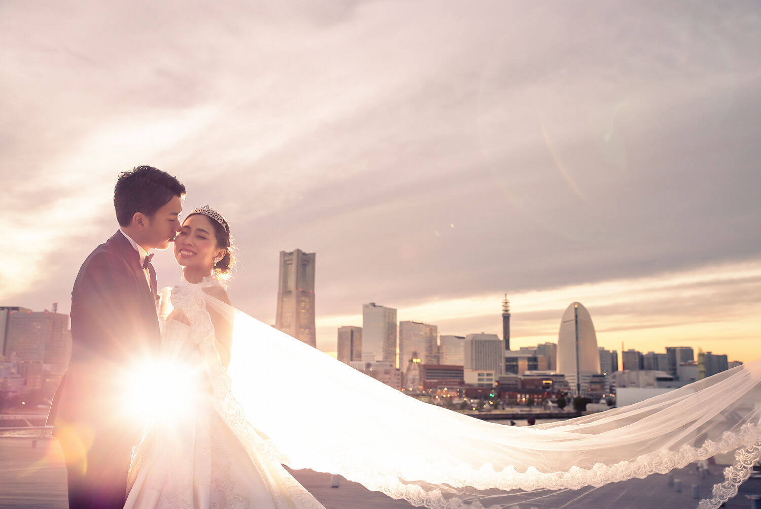 みなとみらいを一望できる人気の大桟橋の前撮りは、横浜出身のウェディングフォトグラファーがカット数無制限で撮影いたします。