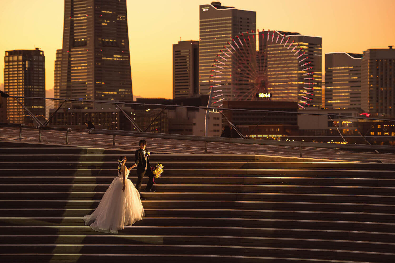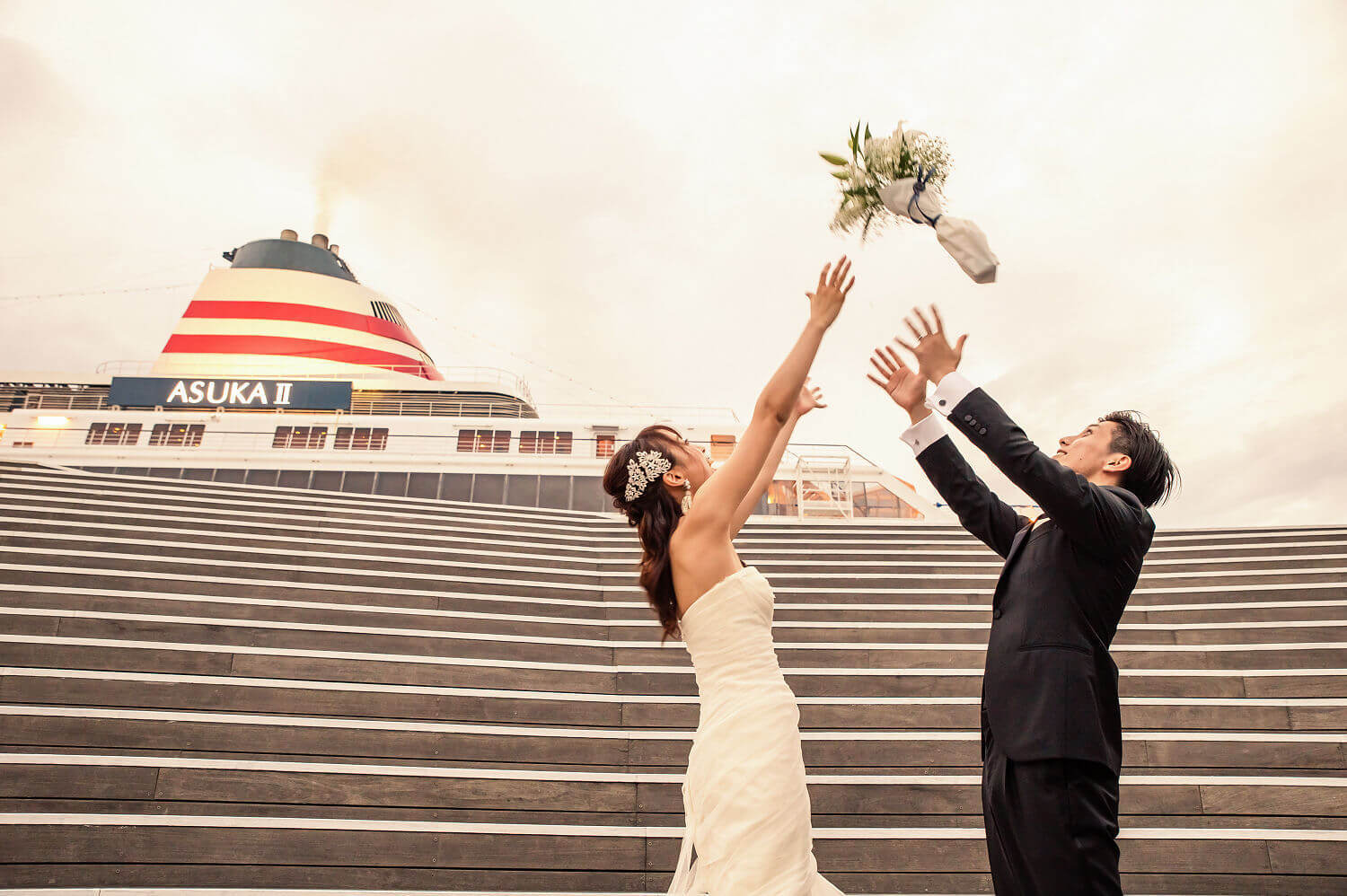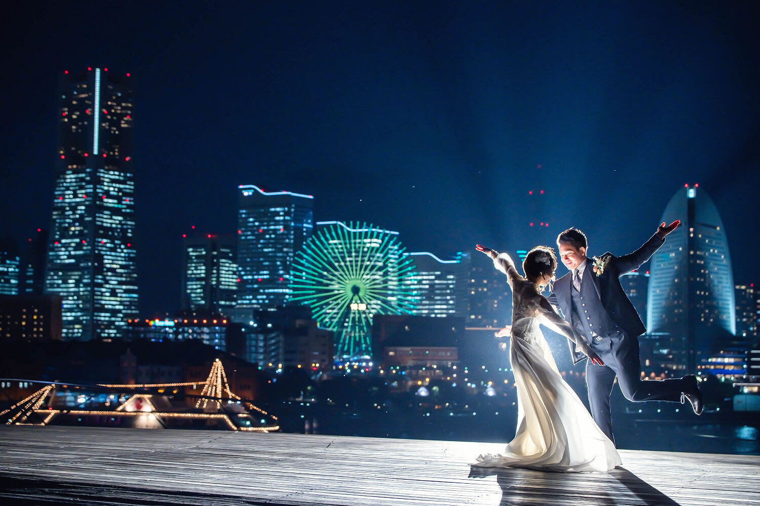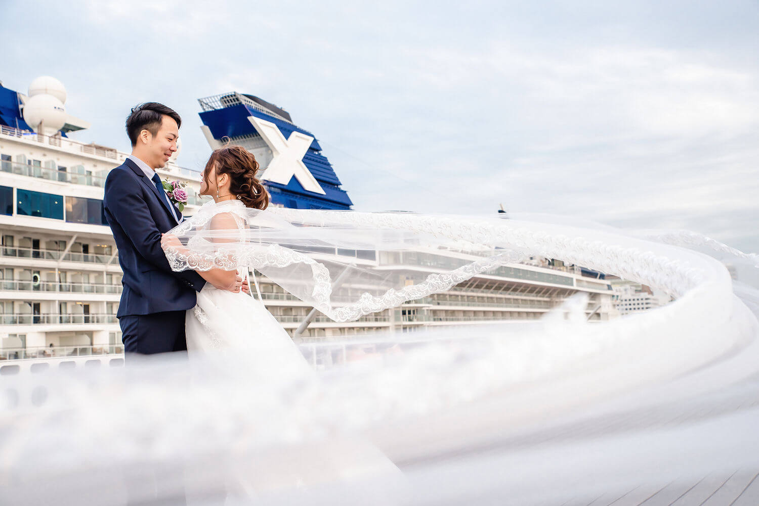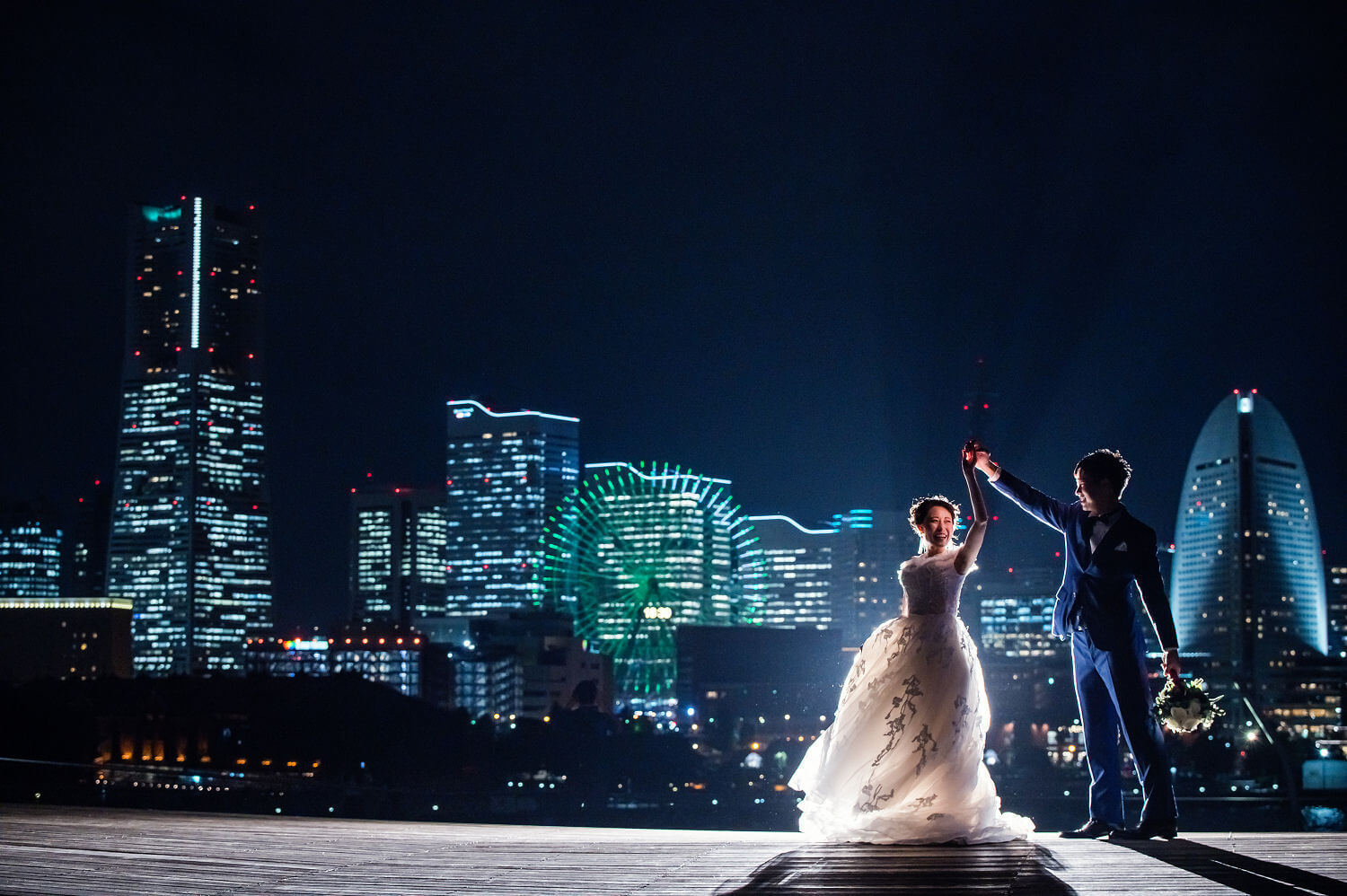 みなとみらいを一望できる人気の大桟橋の前撮りは、横浜出身のウェディングフォトグラファーがカット数無制限で撮影いたします。