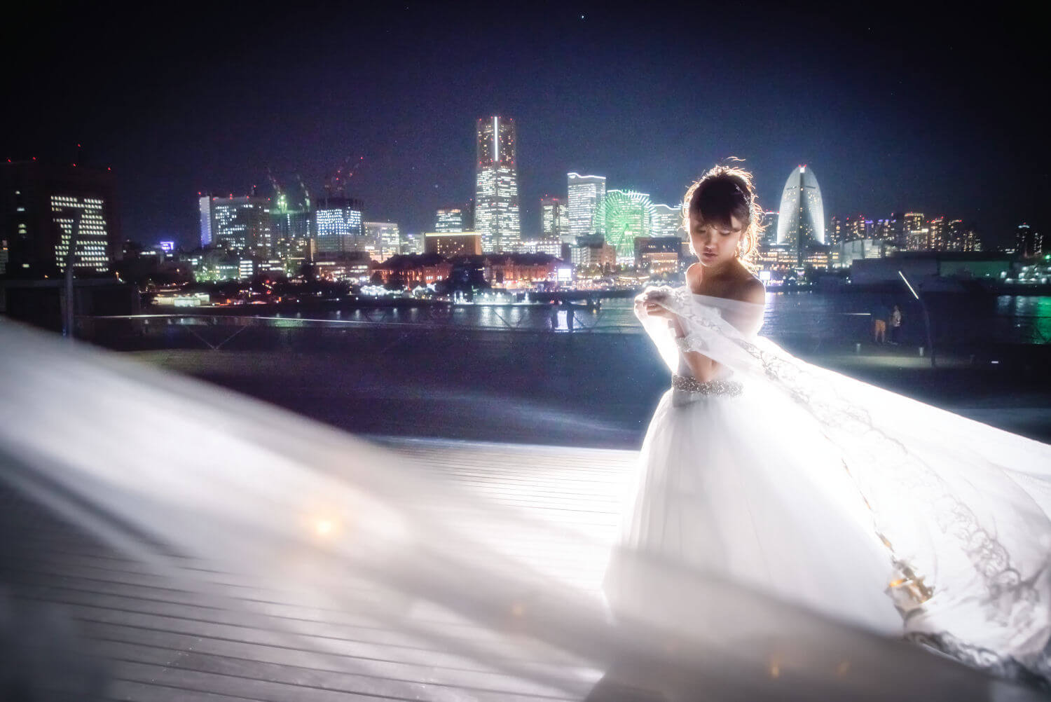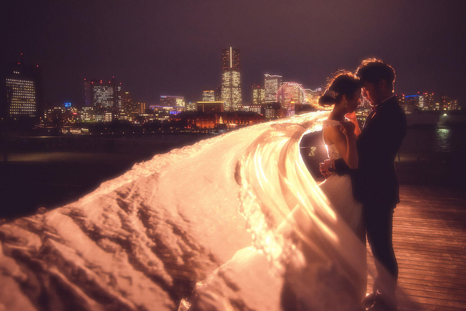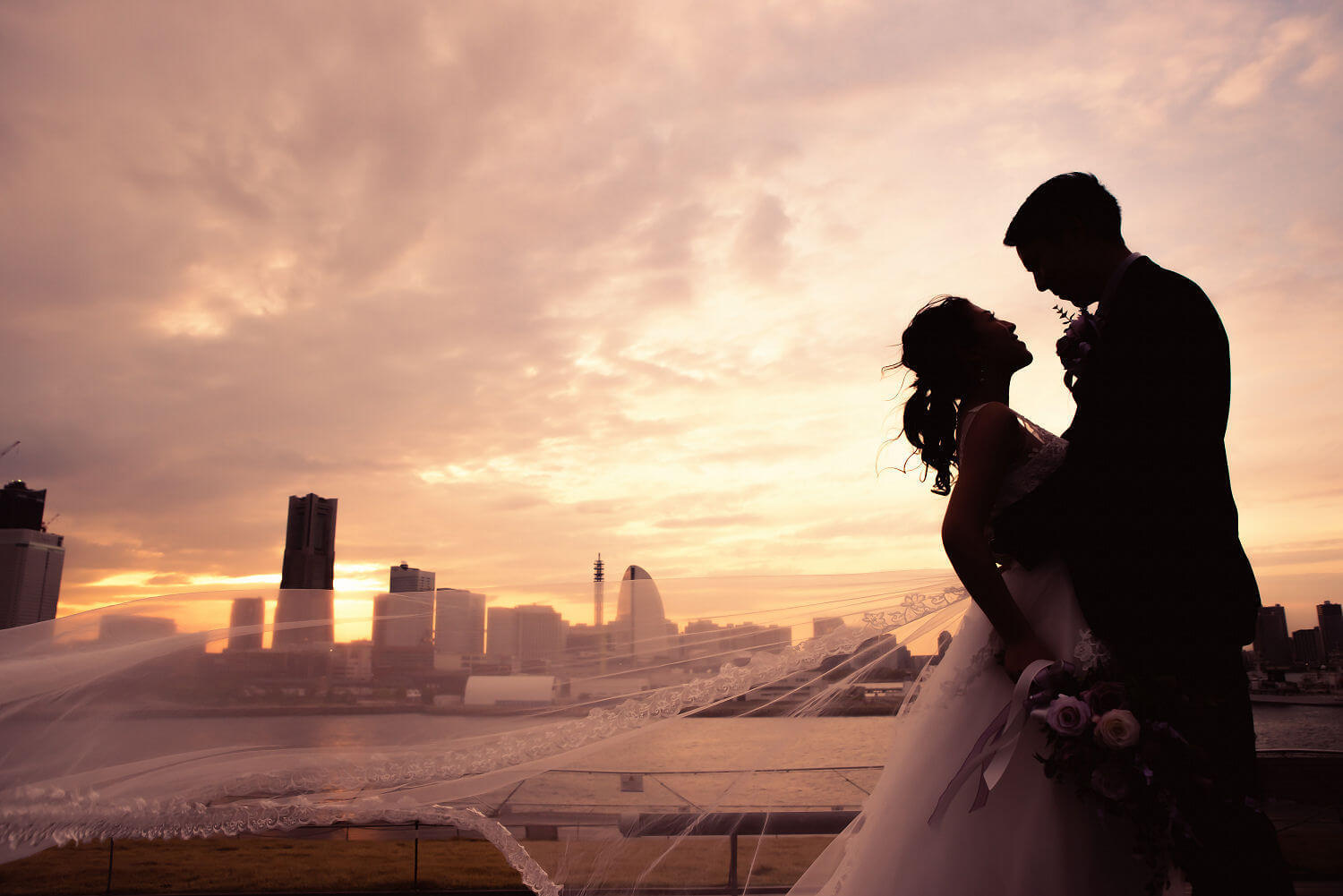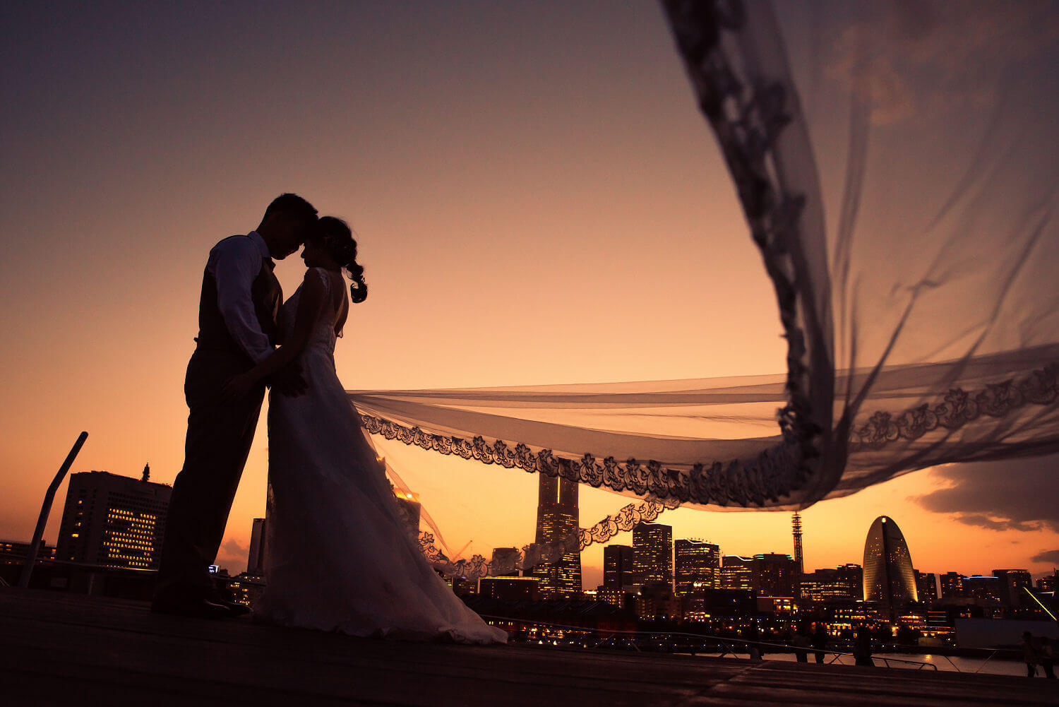 みなとみらいを一望できる人気の大桟橋の前撮りは、横浜出身のウェディングフォトグラファーがカット数無制限で撮影いたします。