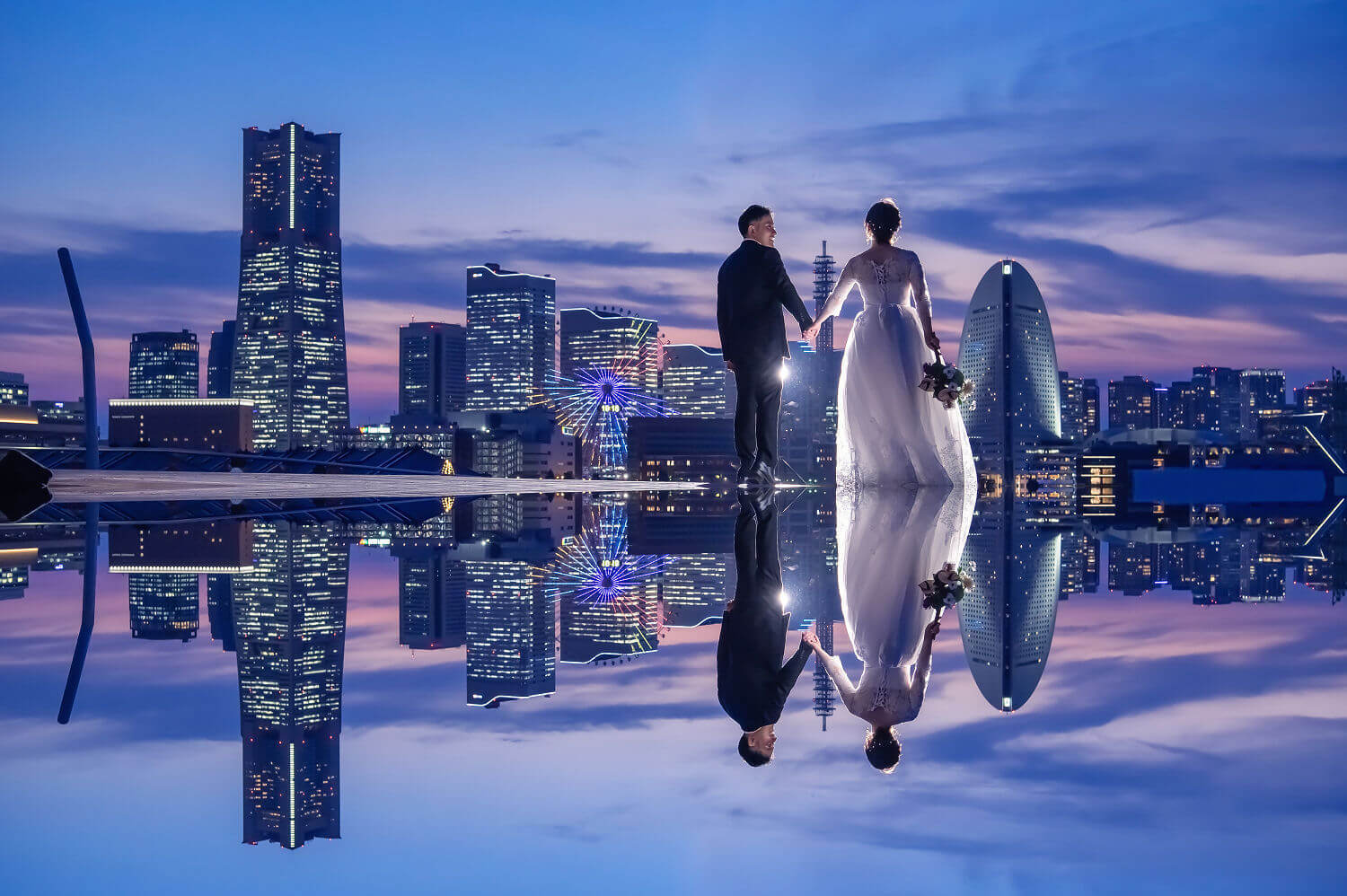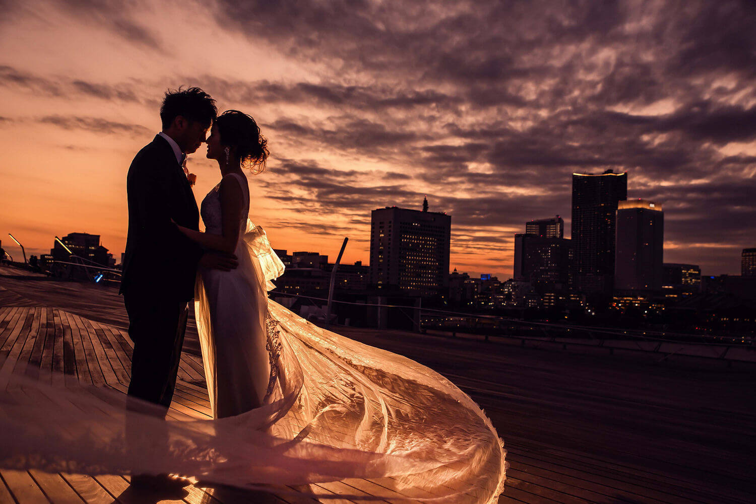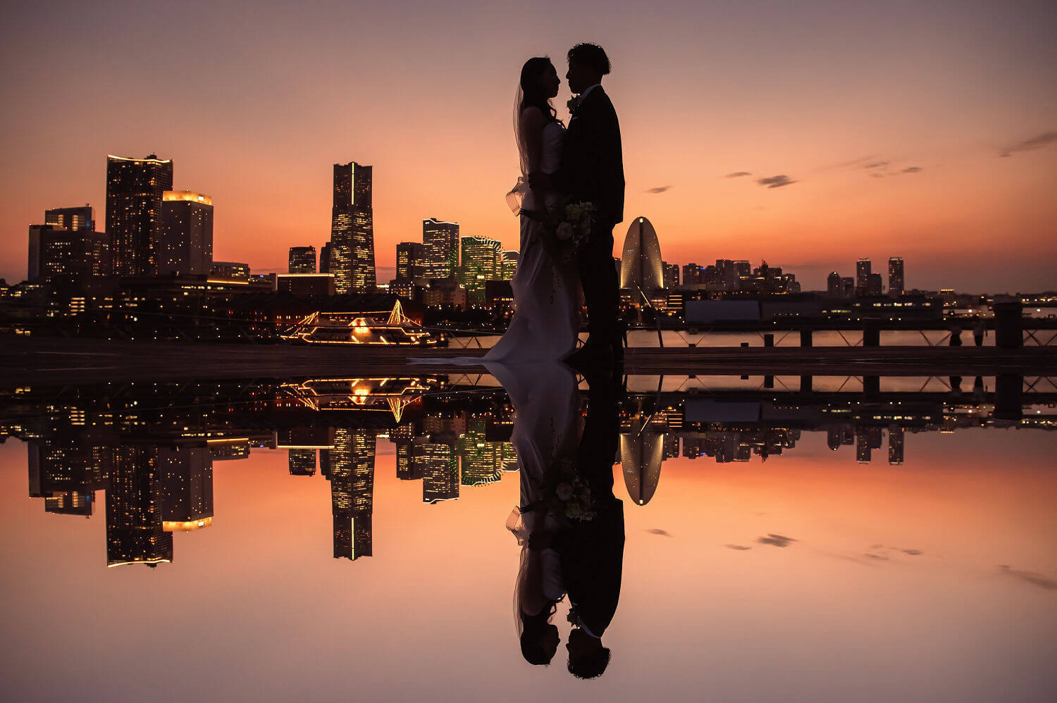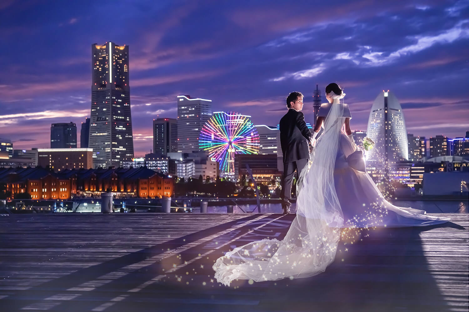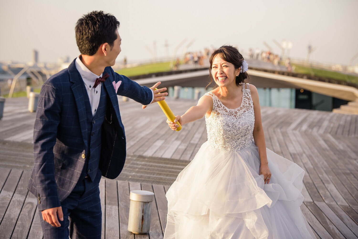 みなとみらいを一望できる人気の大桟橋の前撮りは、横浜出身のウェディングフォトグラファーがカット数無制限で撮影いたします。
