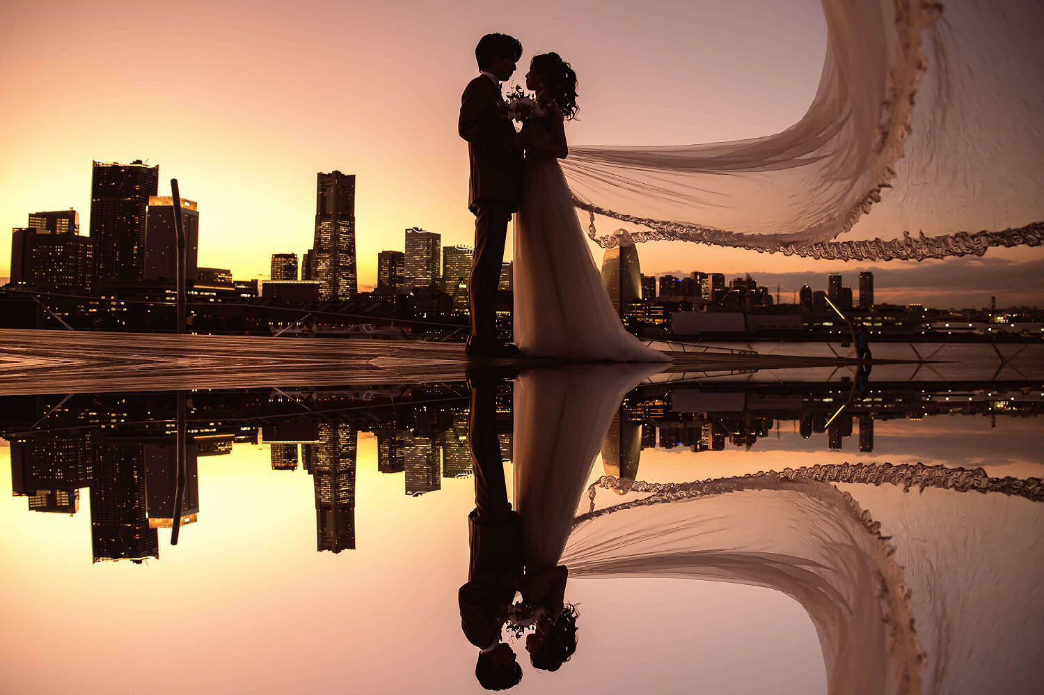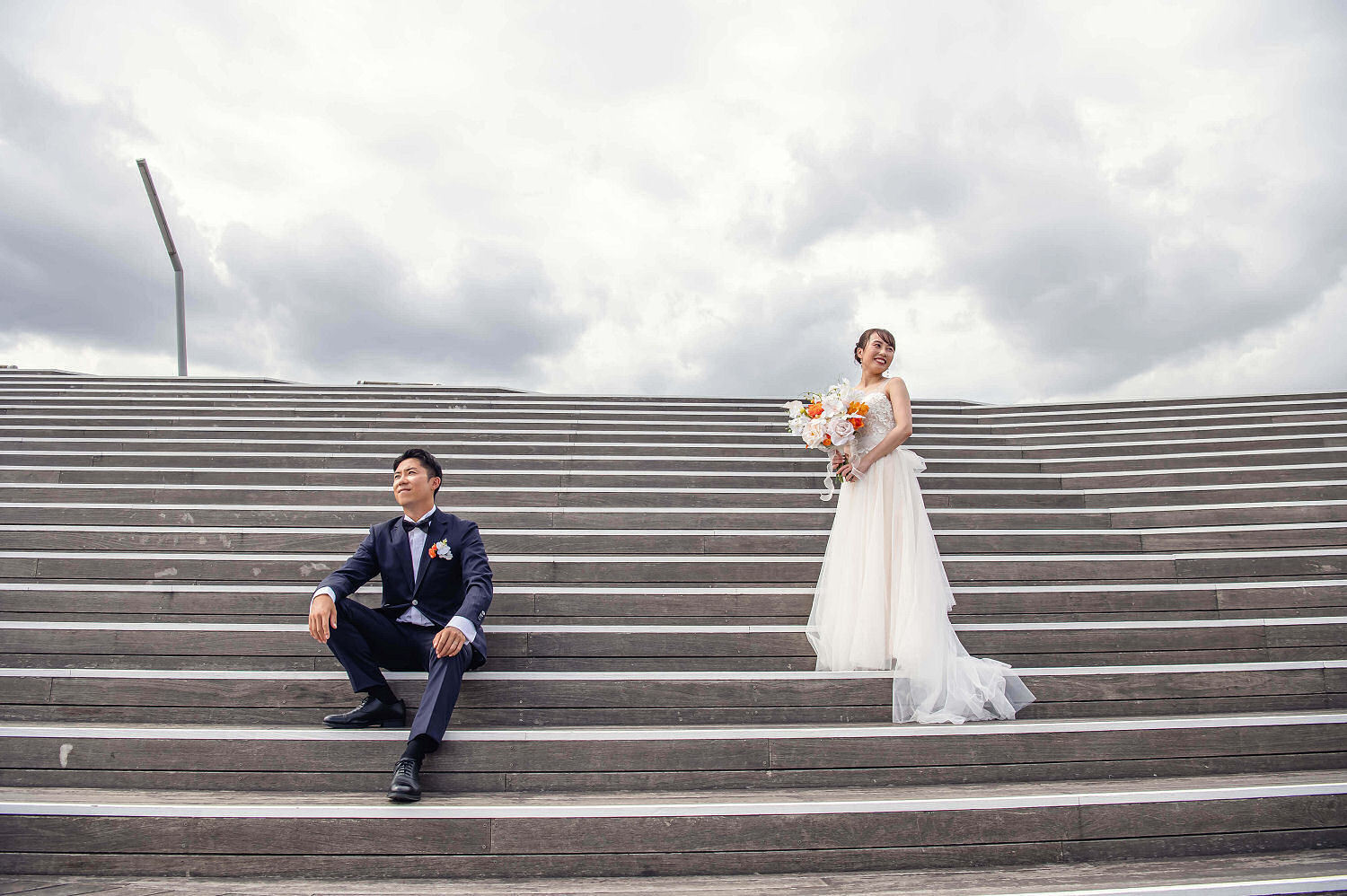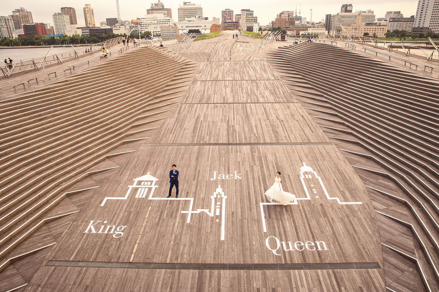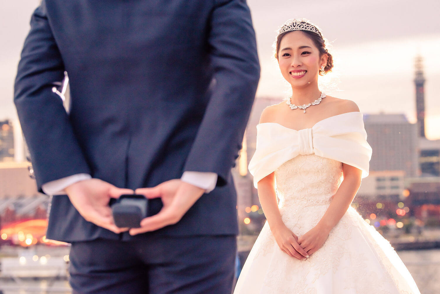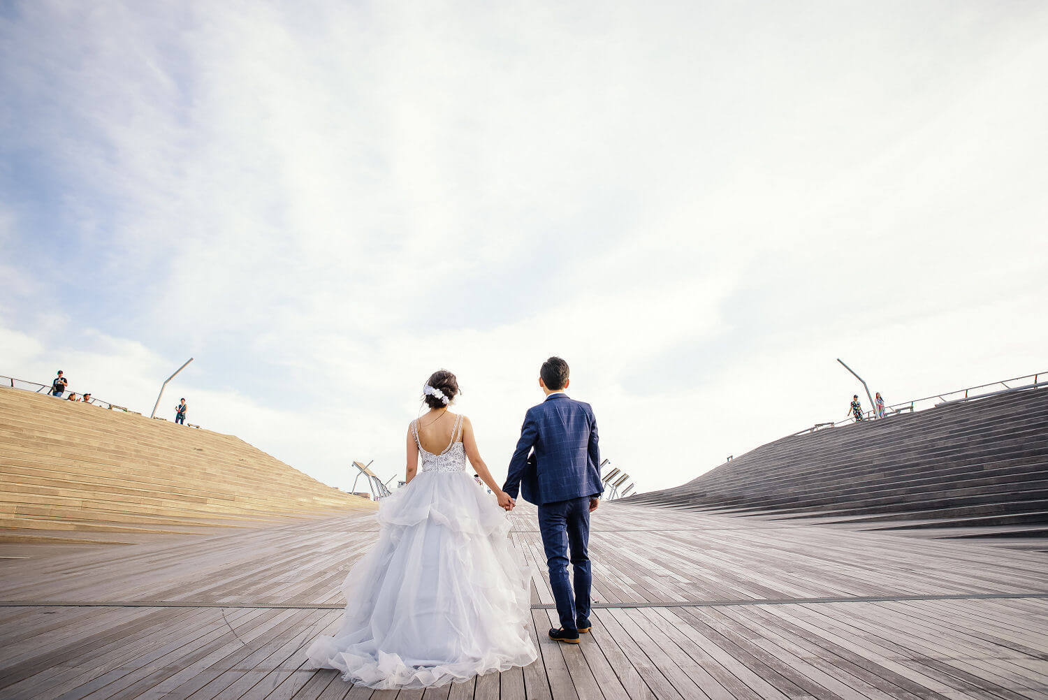 みなとみらいを一望できる人気の大桟橋の前撮りは、横浜出身のウェディングフォトグラファーがカット数無制限で撮影いたします。