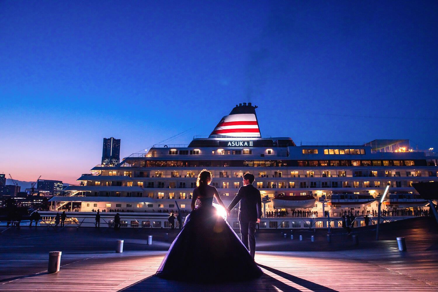 前撮り当日に大型客船が停泊していて、みなとみらいが見えないという事がないように、大型船の入港スケジュールを事前にチェックする事をおすすめいたします。